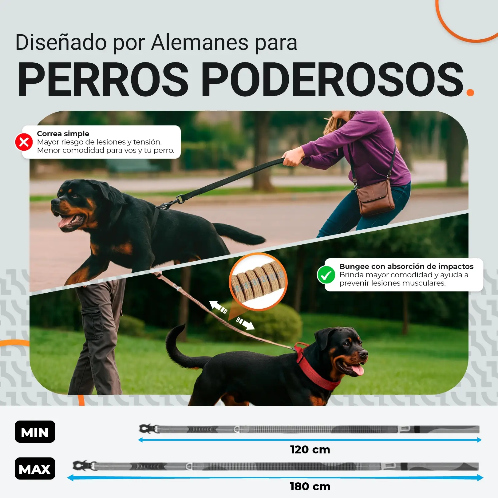 🔹 Control de Doble Manija – Dos manijas: una al final de la correa y otra cerca del collar, para mayor control en cualquier situación.